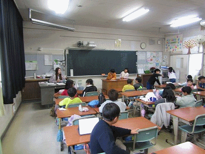 2年生の教室からです。朝の会が行われていました。タブレット入力、漢字のプリント学習、国語プリントの答え合わせなどが行われていました。