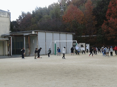 休み時間の様子です。運動場では、風が冷たく感じますが、子どもたちは元気よく遊んでいました。
