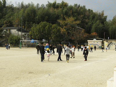 休み時間の様子です。運動場では、青空の下、子どもたちが元気よく遊んでいました。
