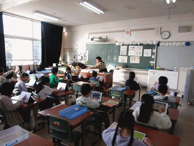 1年生の教室からです。朝の会が行われていました。健康観察、タブレット入力、先生からの連絡などが行われていました。