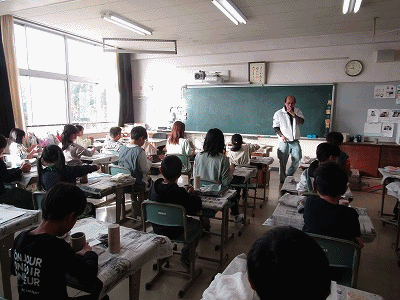 4年生は、講師の方をお招きして、赤津焼体験を行いました。ねん土で、自分でデザインを考えた湯飲みを作りました。