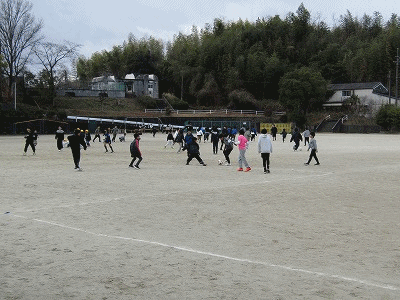 休み時間の様子です。風が冷たく、寒さを感じますが、運動場では、子どもたちが元気よく遊んでいました。