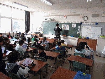 1年生の教室からです。朝の会が行われていました。授業準備、タブレット入力、健康観察などが行われていました。