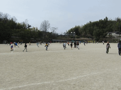 休み時間の様子です。運動場では、青空の下、子どもたちが元気よく遊んでいました。