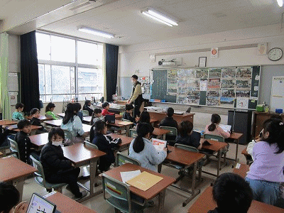 1年生の教室からです。朝の会が行われていました。先生からの連絡、授業準備、朝のあいさつなどが行われていました。