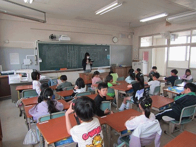 2年生の教室からです。朝の会が行われていました。宿題などの提出物の提出、健康観察、朝のあいさつなどが行われていました。