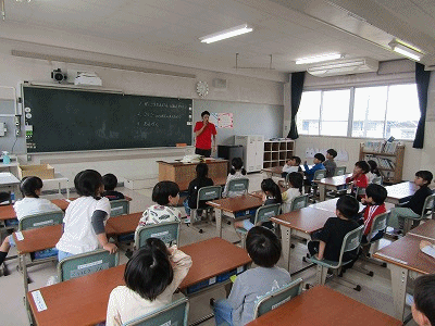 1年生の教室からです。朝の会が行われていました。先生からの連絡、朝のあいさつ、健康観察などが行われていました。