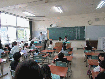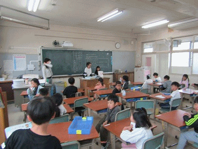 2年生の教室からです。朝の会が行われていました。朝のあいさつ、健康観察、係からの連絡などが行われていました。