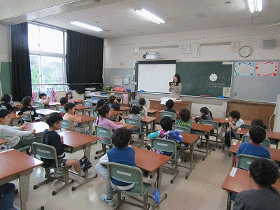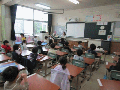 1年生の教室からです。朝の会が行われていました。先生からの連絡、健康観察などが行われていました。