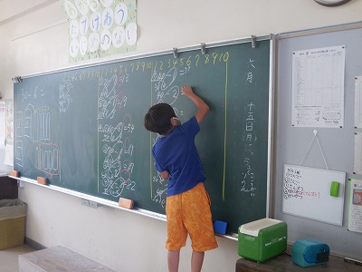 2けた引く1けたの引き算練習です。サクランボ算で考えます。慣れた子は、サクランボで二つに分けなくてもスイスイ計算できています。すばらしい!