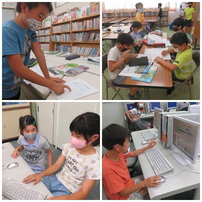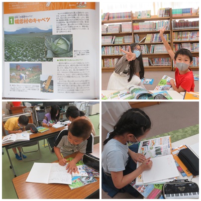 5年生は「高い土地の暮らし」について学習しています。教科書では、「群馬県嬬恋村」を代表例として学習します。班ごとに学習課題を作り、今日は教科書や図書室の本、パソコンなどを使って課題を解決するために調べ学習を行いました。「なぜ、キャベツの生産が盛んなのか」や「村の人口はどのくらいか」など、興味深い課題を協力して調べていました。また、嬬恋村の人口が年々減少しているのに注目し、なぜそこまで人口が減っているのか、また新たな課題を発見している班もあり、積極的に学ぼうとする意欲に感心しました。