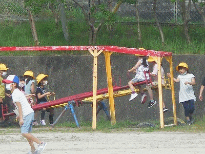 涼しいせいか、子どもたちも動きやすそうです。朝の短い時間ですが、目いっぱい遊ぶ子どもたちです。