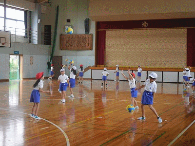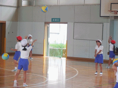 バレーボールが少しずつ様になってきました。やはり練習を繰り返した成果です。連続何回パスが続いたかな?