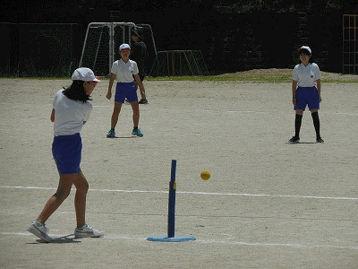 準備運動の次はキャッチボールです。小さいボールを正確に投げたり受けたりすることはなかなか難しいです。そのあとはいよいよバッティング……空振りをしている子もいました。野球は難しいです。