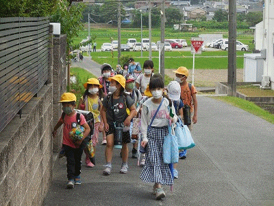 週明けの月曜日、曇り空ですが、涼しい朝です。子どもたちが登校してきました。月曜日のせいか、あいさつの返事に元気のない子がいます。気持ちを切り替え、元気を出して頑張ってほしいです。