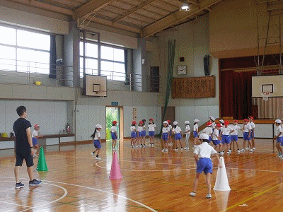 準備運動で恒例の鬼ごっこです。しっかり体を温めました。そのあとはサーキットトレーニング……コーンを回って走ったり、バック走をしたりしました。