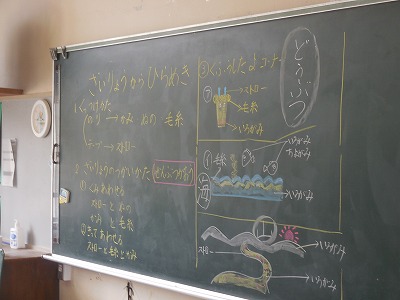 「ざいりょうからひらめき」の作品作りも、大詰めです。いろいろな材料で画用紙が埋まってきました。どんな動物が出来上がってきたかな?
