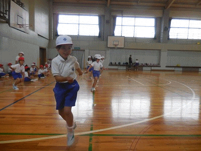 こちらもサーキットトレーニング……前に走ったり横にステップしたり……けっこうな運動量です。自分も1回走りましたが、子どもたちには負けました。