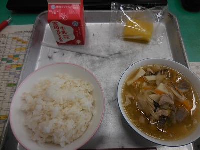 献立は、麦ごはん・牛乳・イナムドゥチ・パインアップルです。