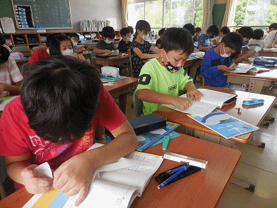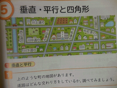 少人数指導で、「垂直・平行と四角形」の単元を学習しています。直線の交わり方を絵の中から探します。上から紙を当ててみれば、一目瞭然!これから図形の授業に発展していきます。