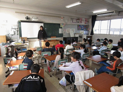 「いろいろな かたちの かみから」の単元です。もらった1枚の紙から、想像を膨らませていきます。隣のクラスの作品を見て、ヒントをもらいます。どんな絵にしていこうかな?