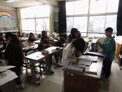 いよいよ「まどをひらいて」の作品作りに取り掛かります。たくさんの窓をカッターナイフで切り開けて、さあ、何を見せようかな?