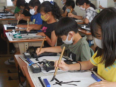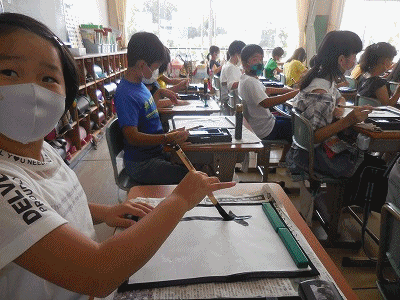 「林」の練習です。左右のバランスがとても難しいです。八画目の右払いがしっかり払えるように書いていくことが大切です。集中して、一画一画真剣に書いていきます。