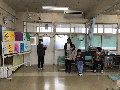 また、国語では、「お手紙」の教材を使って、音読の練習をしています。こうやって読むといいんじゃない?とアドバイスをもらいながら、ナレーター、がまくん、かえるくんと分けて、音読の練習を頑張っています。
