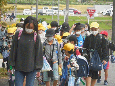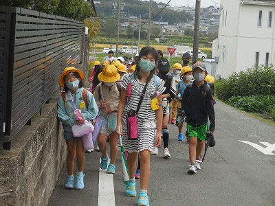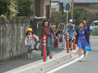 子どもたちが登校してきました。やはり月曜日はテンション低めです。