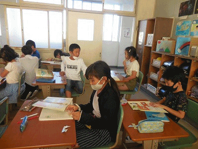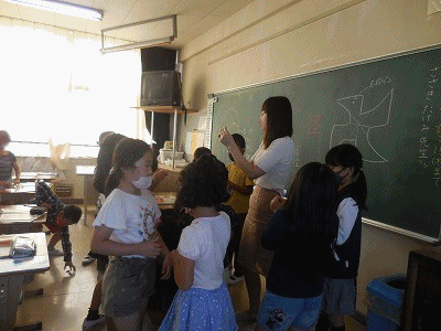 「円と球」の単元の導入です。「ふきこま」を作りました。息を吹きかけたらクルクル回る……はずですが、なかなか回りません。平らな所に置いて上からまっすぐ吹くのがうまく回すコツです。