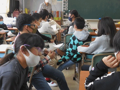 こちらは5年2組。「どうぶつ園か水族館」「テレビかゲーム」……理由をつけて自分の意見を話します。相手の話は頷きながら聞きます。
