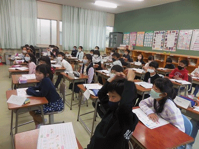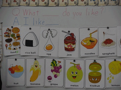 「What 〜 do you like ?」「I like 〜.」を覚えました。英会話を聞き取って正しい組み合わせを線でつなぎました。また、ペアで相手の回答の予想を書いて、実際に英語で質問して確認しました。
