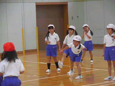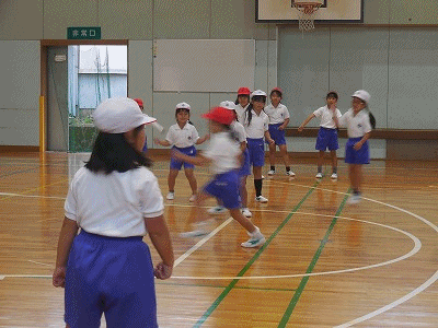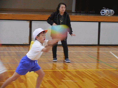 こちらは体育館でドッジボールです。これまでボールをまっすぐ投げる練習を重ねてきました。その成果で、ドッジボールがどんどん上達してきました。