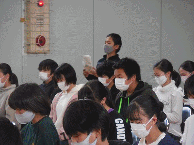 3月に入りました。いよいよ卒業式の練習です。呼びかけの練習が始まりました。卒業式本番に向けて、これから練習を重ねていきます。