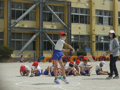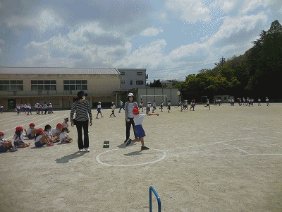 5・6組の子たちもソフトボール投げに挑戦です。たくさん飛んだかな?