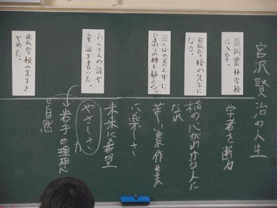 「イーハトーヴの夢」の単元です。宮沢賢治の生涯について、教科書から読み取っていきます。「雨ニモマケズ」の詩が有名です。ぜひ、賢治の人生観について深く学んでほしいです。