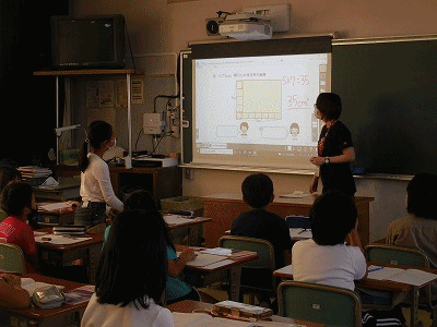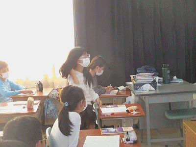 実習生の授業です。子どもたちは一生懸命協力します。とてもいい雰囲気で授業が進んでいきます。