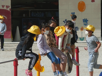 風は少し強めですが、日差しは十分です。絶好の外遊び日和になりました。