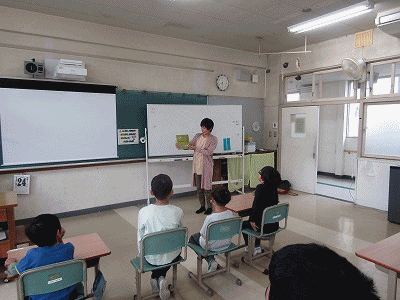 4年生の版画の授業のゲストティーチャーとして幡山中学から美術が専門の須田先生に来てもらいました。本地区においても、様々、小中の連携を進めているところです。金曜日には幡山中の英語の先生が本校の朝のモジュールの授業を見に来てくださる予定です。
