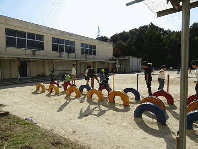 休み時間の様子です。曇り空で、少し肌寒い日ですが、運動場では、子どもたちが元気よ...