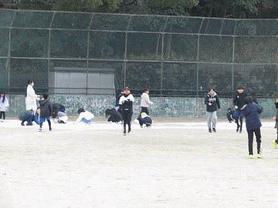休み時間の様子です。寒空ですが、運動場では、子どもたちが元気よく遊んでいました。
