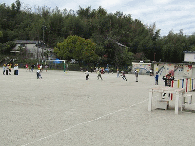 休み時間の様子です。曇り空ですが、運動場では、子どもたちが元気よく遊んでいました...