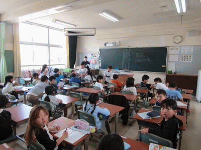 2年生の教室からです。朝の会が行われていました。先生からの連絡、授業準備、手紙の...