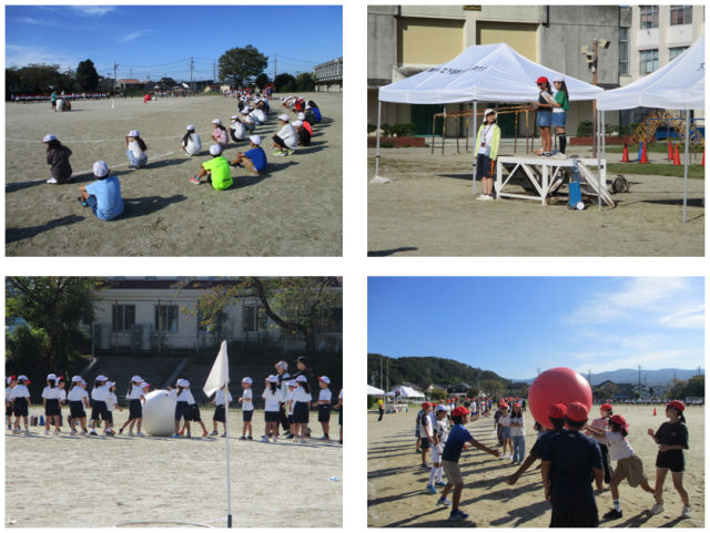 大玉送りは7年ぶりに行う種目で、全校児童が初めての体験です。