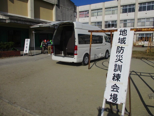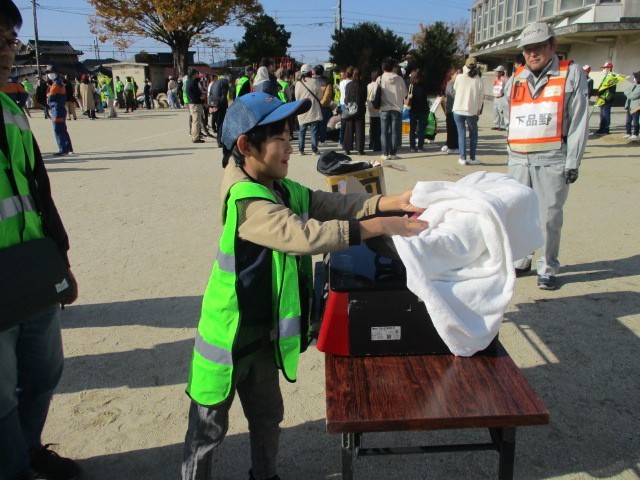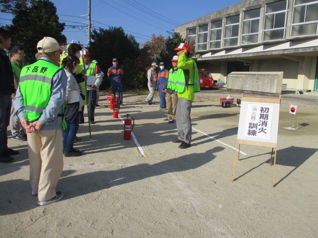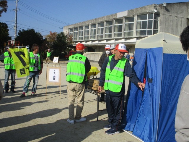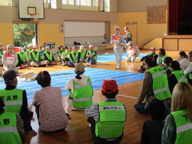 16日午前、下品野小学校のグランドと体育館で地域防災訓練が実施されました。