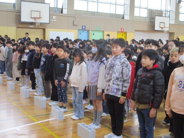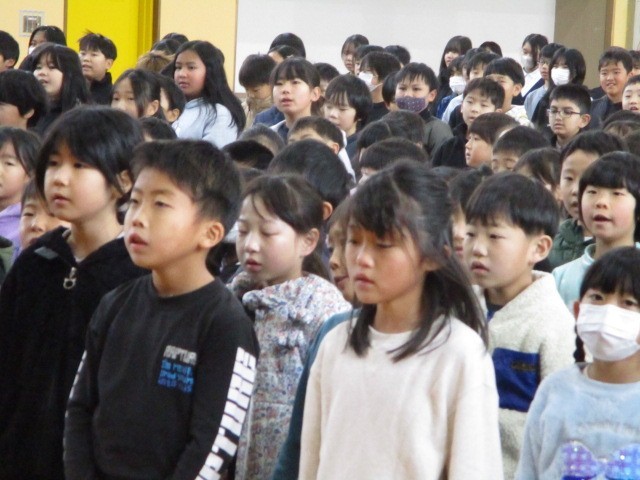 校歌斉唱では、1年生も校歌をしっかり覚え、全校で声をそろえて歌うことができました。
