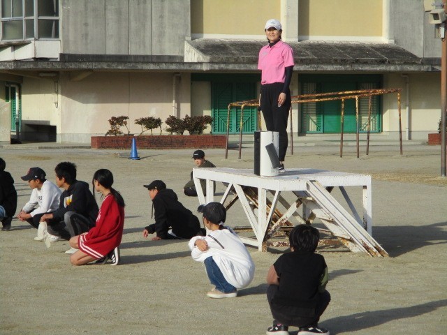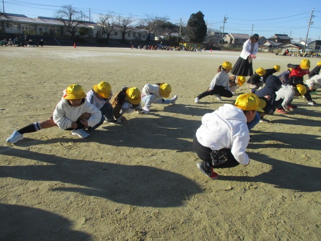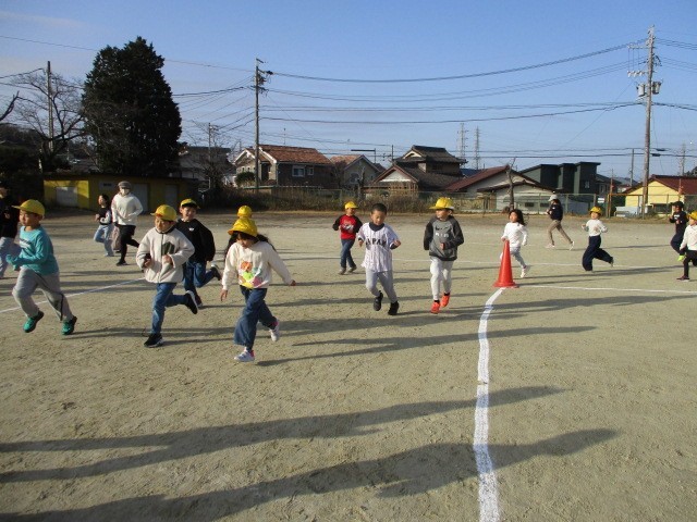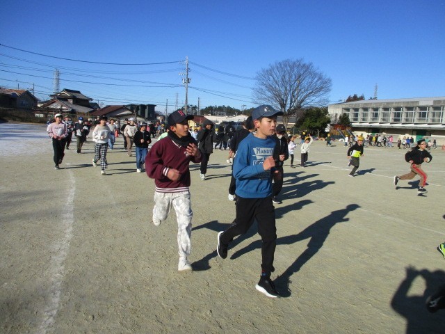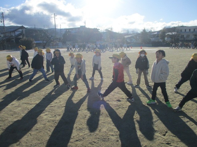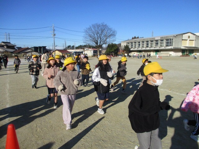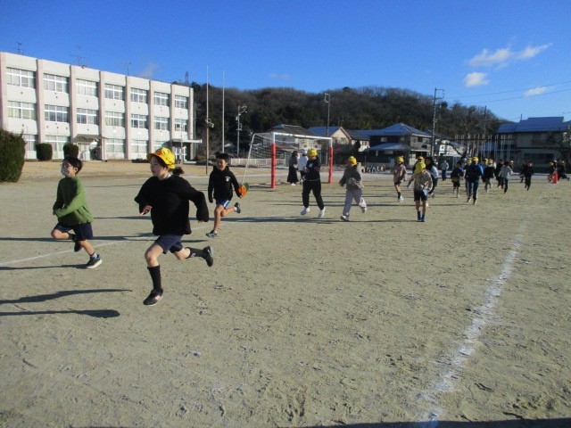寒さに負けず、準備体操をしっかりしてから走り始めます。