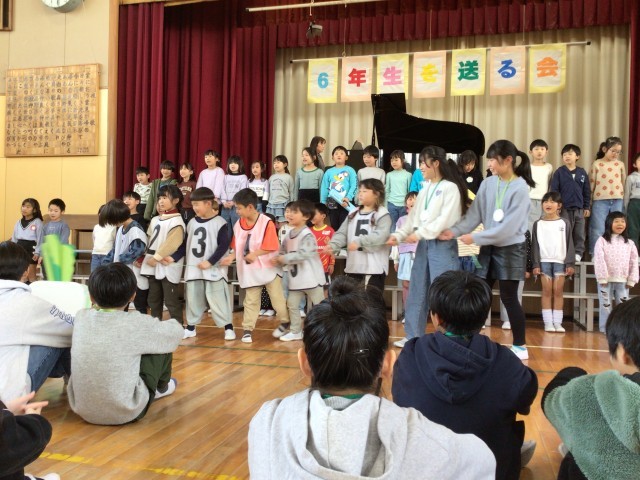 6年生への感謝の気持ちを音楽劇「大きなかぶ」で表しました。