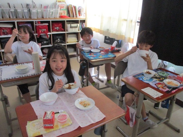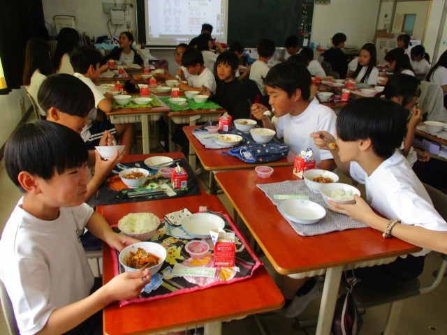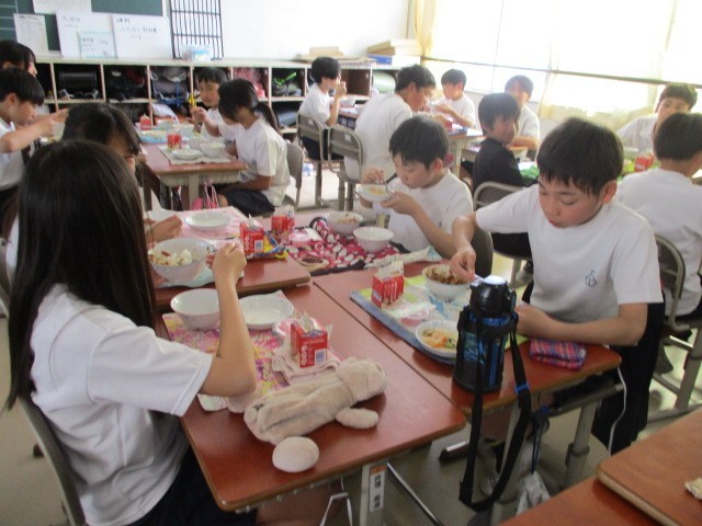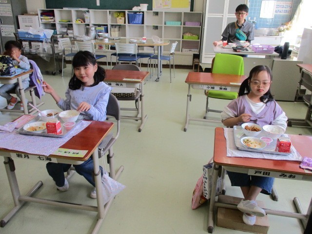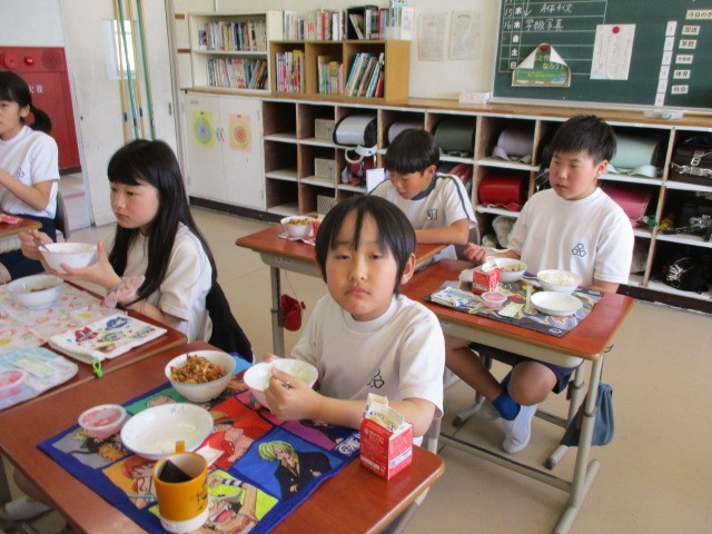 新年度、最初の給食は人気メニューのマーボー豆腐と中華あえでした。