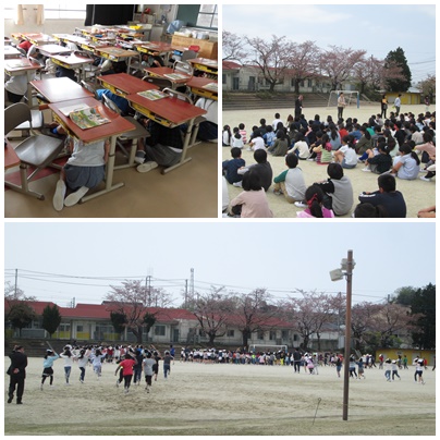 2時間目に地震発生による避難訓練を行いました。今回は、教室から運動場までの避難経路の確認です。まったく、しゃべらずすばらしく訓練ができました。地震、火災、不審者、台風、交通事故・・・・いつ起きるかわかりません。準備しすぎることは決してありません。
